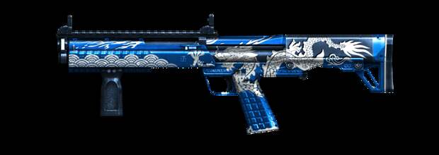 KSG-15 Blue Silver Dragon — новейшая модель ружья KSG-15 с увеличенным боезапасом, украшенная изображением серебряного дракона на синем фоне.